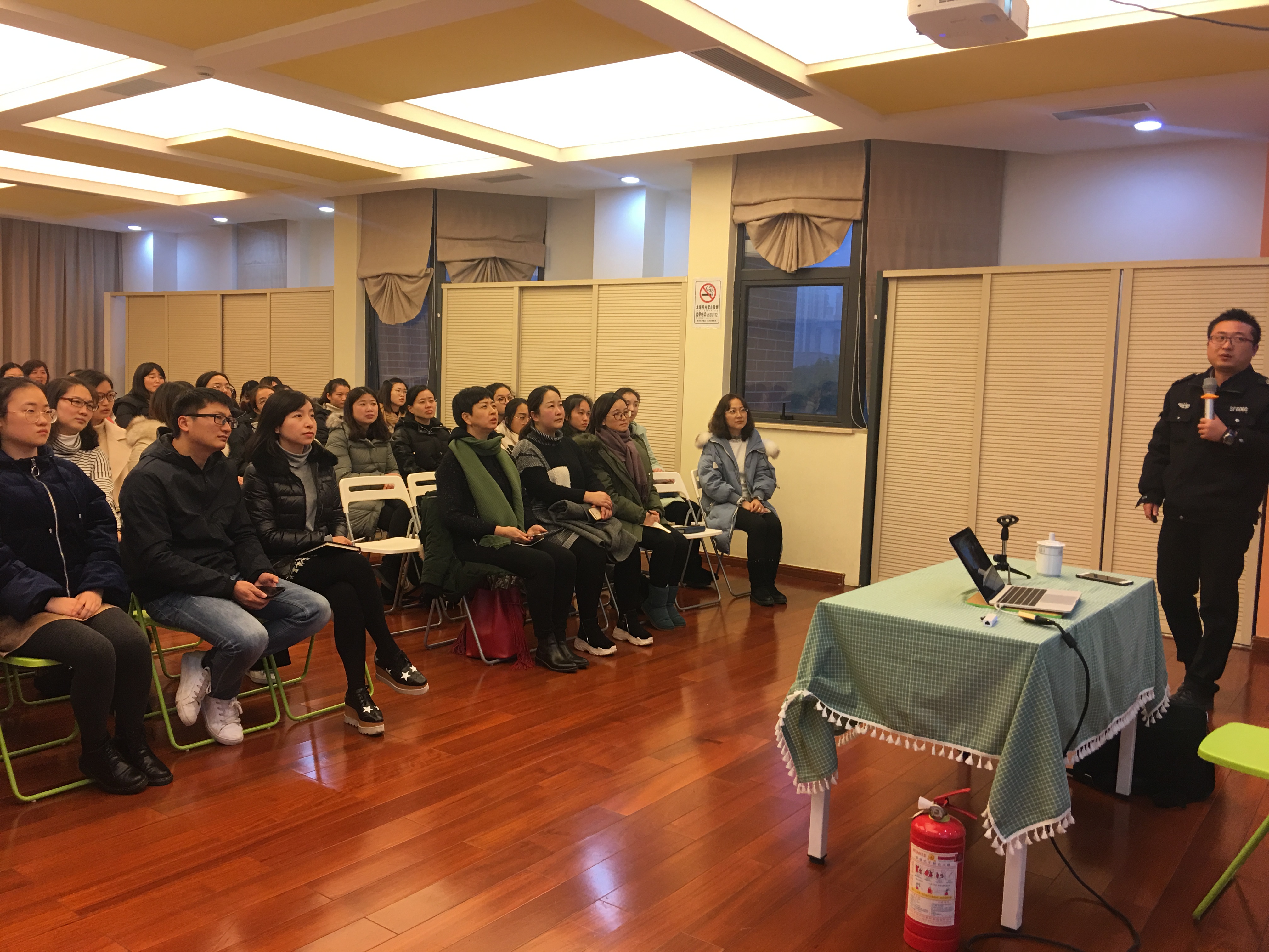 为了不断提高我园教师对消防安全工作的认识,进一步掌握消防安全知识以及消防灭火器材的使用方法,做到全民参与,防治火灾。2019年1月10日下午,星慧幼儿园联合翰林幼儿园特邀请苏州社安消防服务中心的郑警官来园开展消防知识讲座。