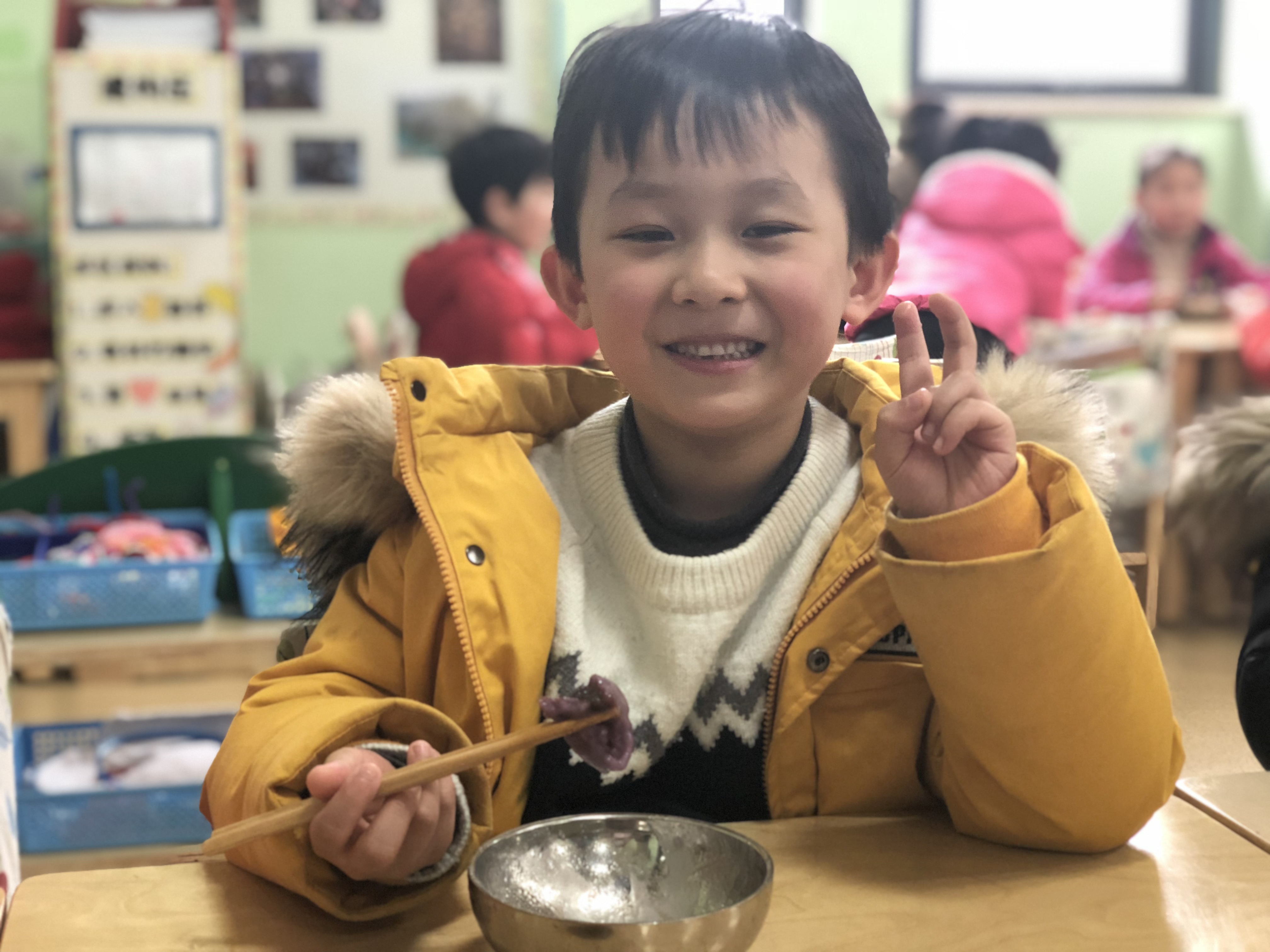 热腾腾的元宵来啦!大家坐在一起吃着自己动手包的元宵,看着自己和同伴碗里的元宵,孩子们内心的成就感全部显露在那张张笑脸上,别提多开心了!
