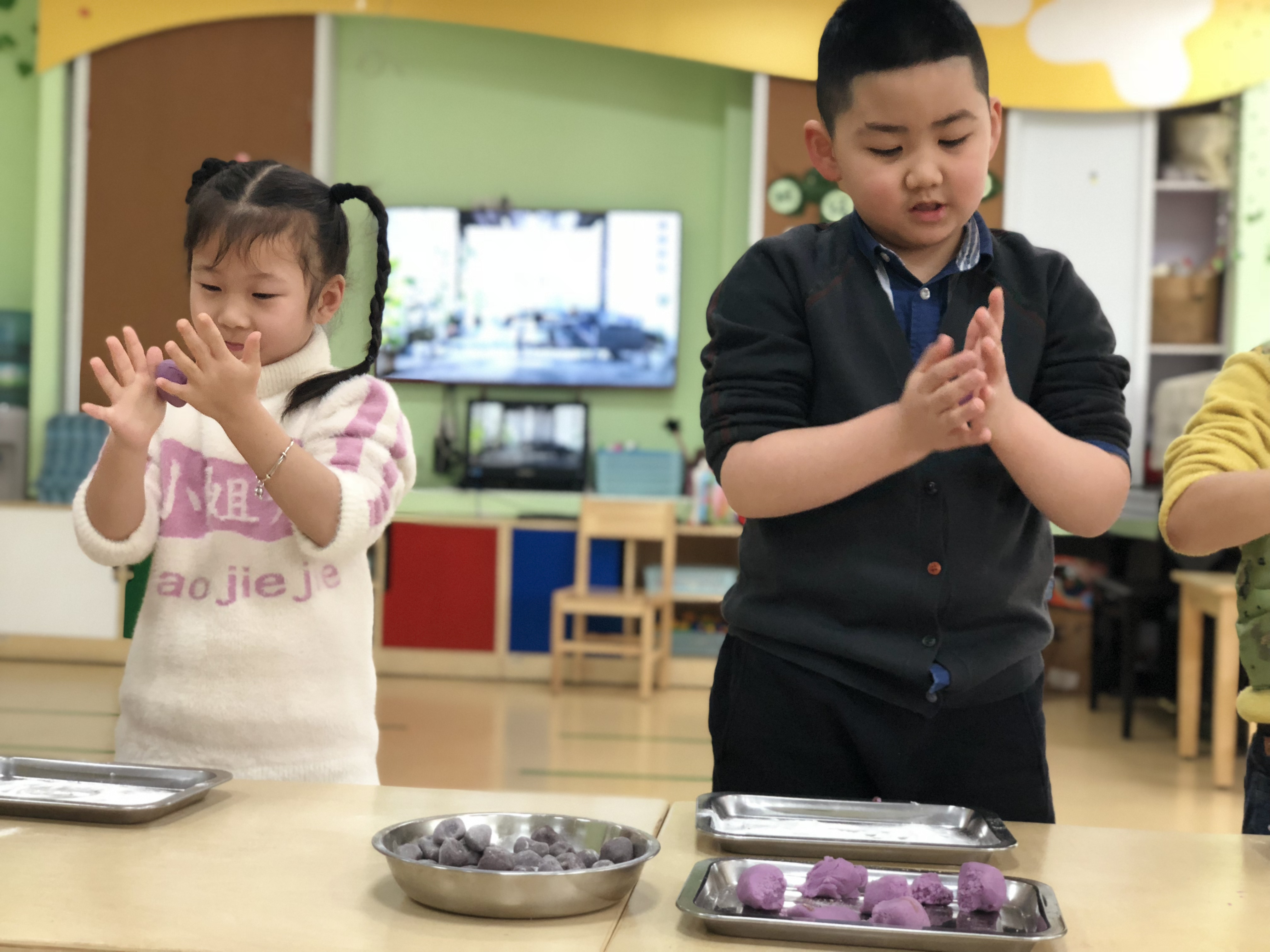 大班的宝贝们可厉害了,他们用一双双灵巧的双手,在制作紫薯豆沙元宵呢!自己擀皮,包馅,不亦乐乎……看!我们的元宵很“有料”噢!你想吃吗?