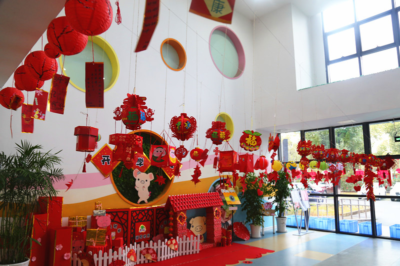 哇!你们瞧!老师们和宝贝们在一起挂灯笼呢!一个个灯笼形态各异,憨态可掬,红彤彤的真喜庆!偷偷告诉你们噢,这些灯笼和灯谜都是老师和宝贝们亲手制作的呢!很有意义噢!
