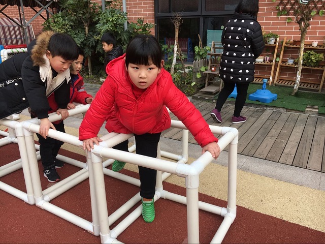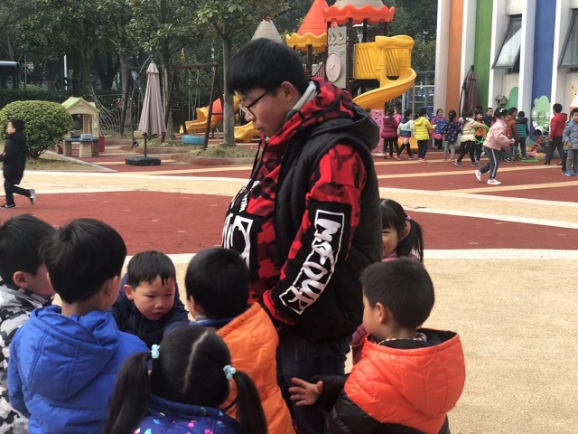 晨锻:刚开始,有些幼儿有点害羞,有点不想成为怀孕的爸爸或者妈妈,但是看了小谢老师之后,纷纷改变想法,想要尝试体验一下做“孕妈”的感觉。小谢老师告诉我们运动的时候,要慢慢走,不能很快的跑,不然可能会伤害宝宝。