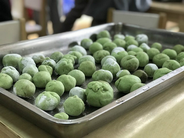 这个我知道!把艾草叶和糯米粉和在一起就可以得到绿色的面团啦!