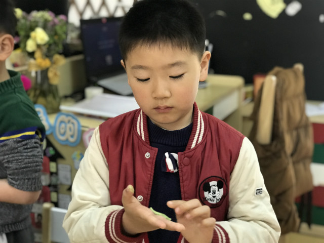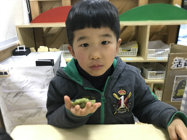 欢呼过后,孩子们洗干净小手跃跃欲试,拿着面团开始搓揉,一个个可爱的青团就完成啦!