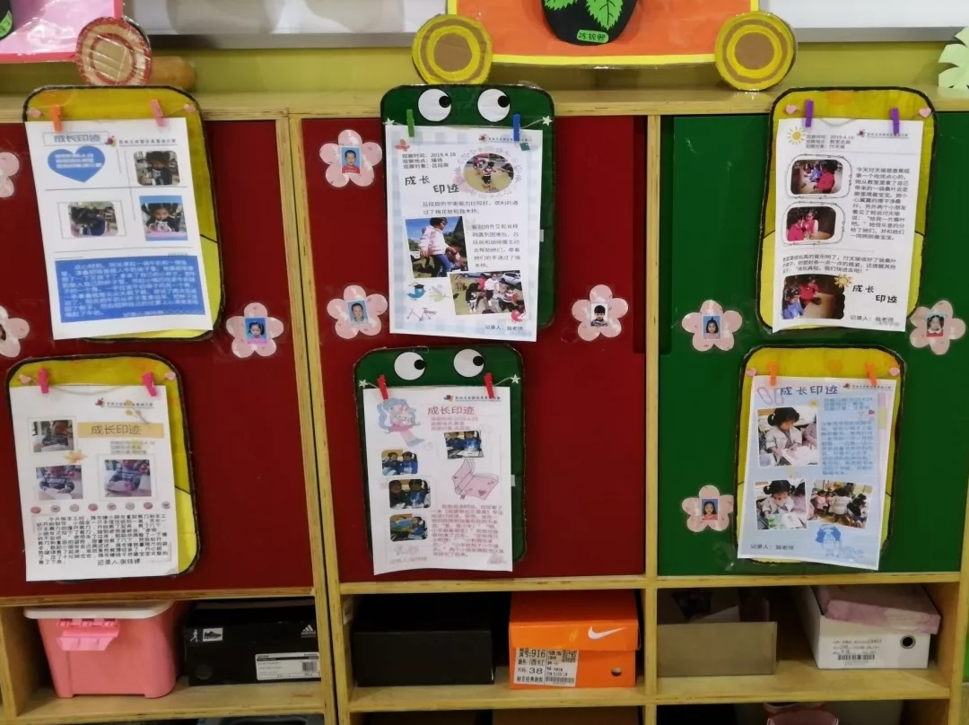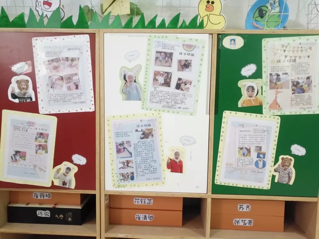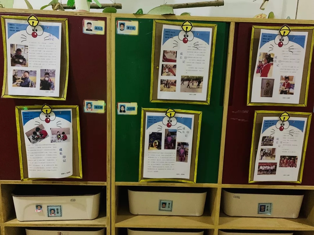星慧老师们可是动足了脑筋,大家集思广益,充分利用孩子们衣帽柜门板的空间,根据幼儿年龄特点,为孩子们量身定制了特别的“成长印迹”板。