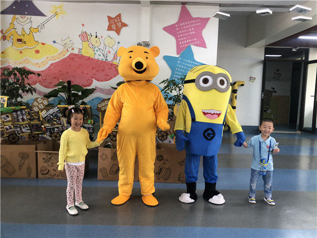 在活动的当天,还有大班的哥哥姐姐和可爱的卡通人物在门口分享糖果哦!